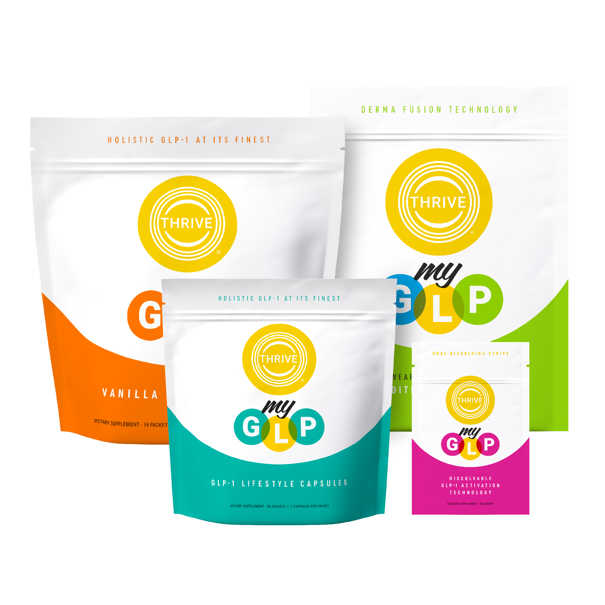 Discover the future of health and weight management with the THRIVE myGLP Experience, a holistic & revolutionary 4-part system. This innovative system supports weight & appetite management, enhances mental clarity and focus, boosts cardiovascular health, and promotes a healthy metabolism.